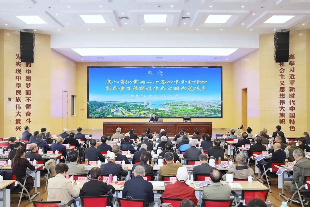 陈浩书记在讲话中全面回顾了湖州撤地建市以来的发展历程与辉煌成就,强调各项成绩的取得凝结着广大老干部、老同志的心血智慧与无私奉献。他系统总结了“十四五”期间全市上下深入实施“八八战略”、坚定不移践行绿水青山就是金山银山理念、扎实开展“在湖州看见美丽中国”实干争先主题实践所取得的显著成就,强调这些成绩的取得为开创中国式现代化湖州实践新局面奠定了坚实基础。他传达了党的二十届四中全会的重要精神,并结合湖州实际,分析了未来发展面临的重大机遇与独特优势他表示,市委、市政府正在科学谋划“十五五”发展规划,并对湖州未来的发展前景充满信心。他最后强调,老干部、老同志是党和国家的宝贵财富,希望大家持续发挥政治、经验与威望优势,为湖州的高质量发展建言献策、贡献智慧。